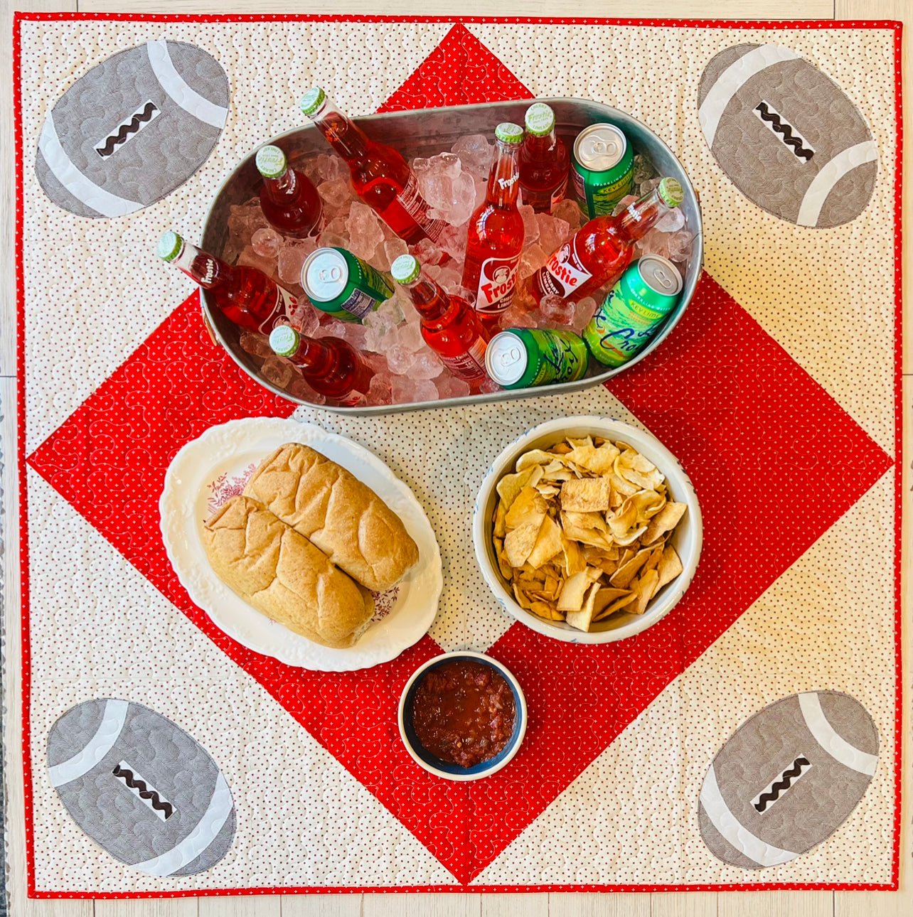Football is a staple at our house! Choose fabric to customize this project for your favorite team. It is the perfect size quilt for a table topper or a lap quilt for those cold game days!