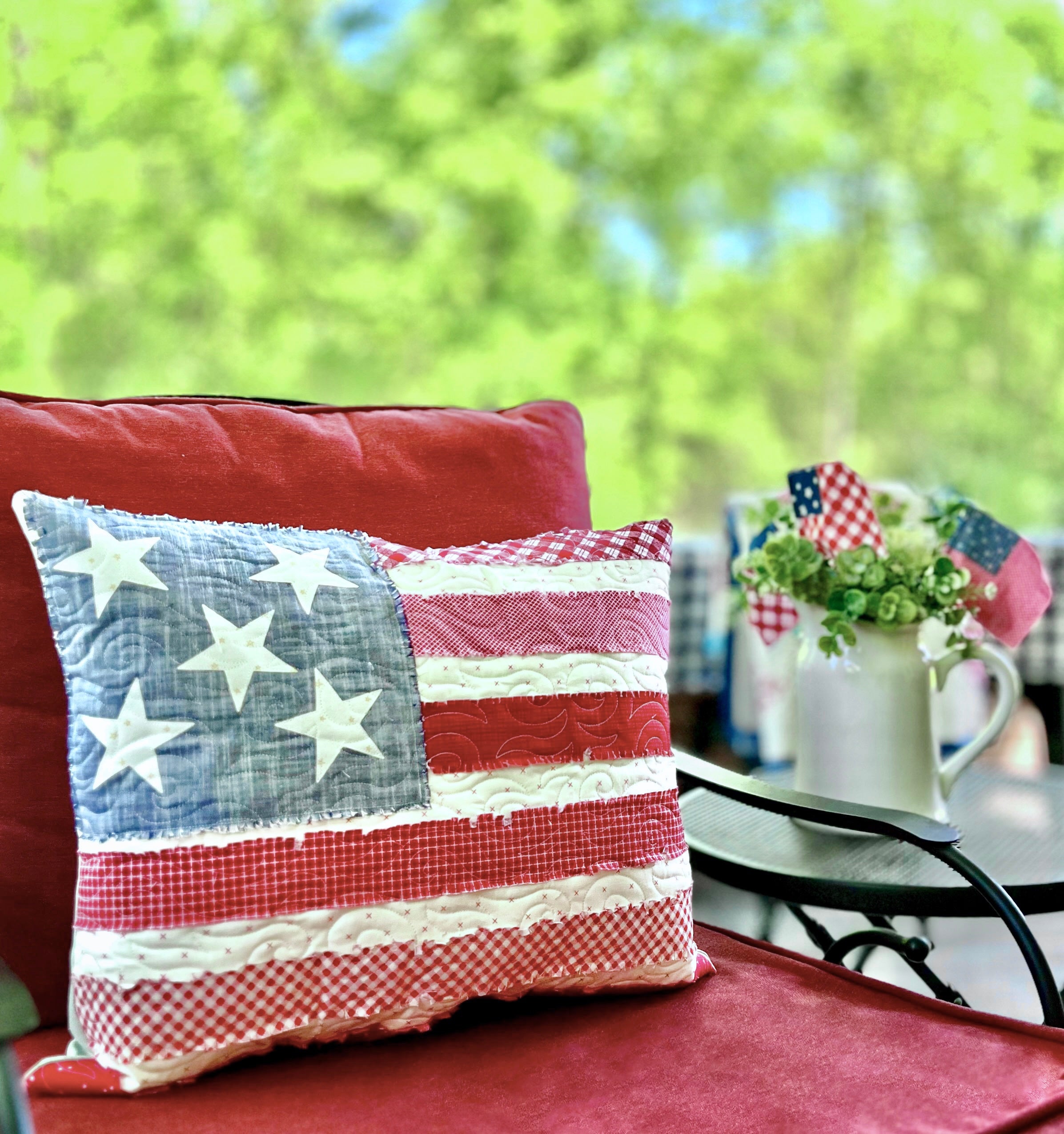 Named after Betsy Ross, this quick and easy project is sure to make you home beautiful for summer! Fat quarter and scrap friendly, this pillow adds color and a patriotic flair to any room or porch.