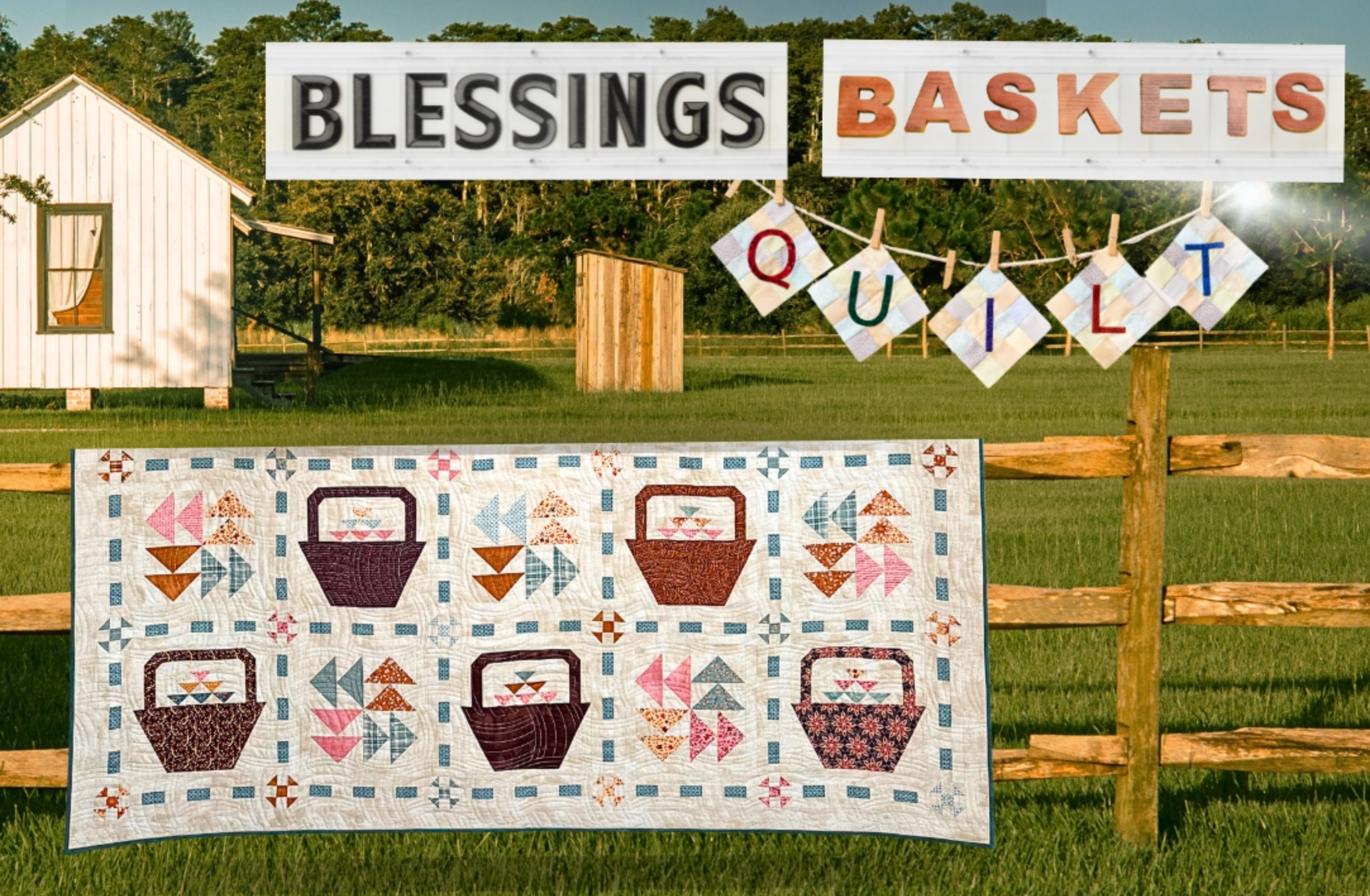 Blessings Baskets quilt features charming baskets overflowing with bounty,