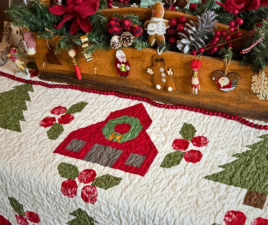 An old horse drawn sleigh in front of a holly decorated farmhouse with a warm fire burning in the hearth. Family going for a hike to pick out the Christmas tree and arranging evergreen branches for a wreath to adorn the old red barn. Christmas on the farm a beautiful and magical place!