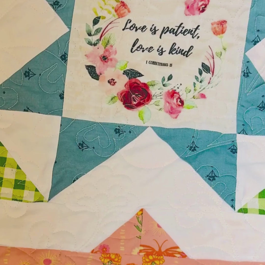 If you would like to purchase this fabric separately, it can be found here: BIBLE VERSE FABIRC BY THE YARD
