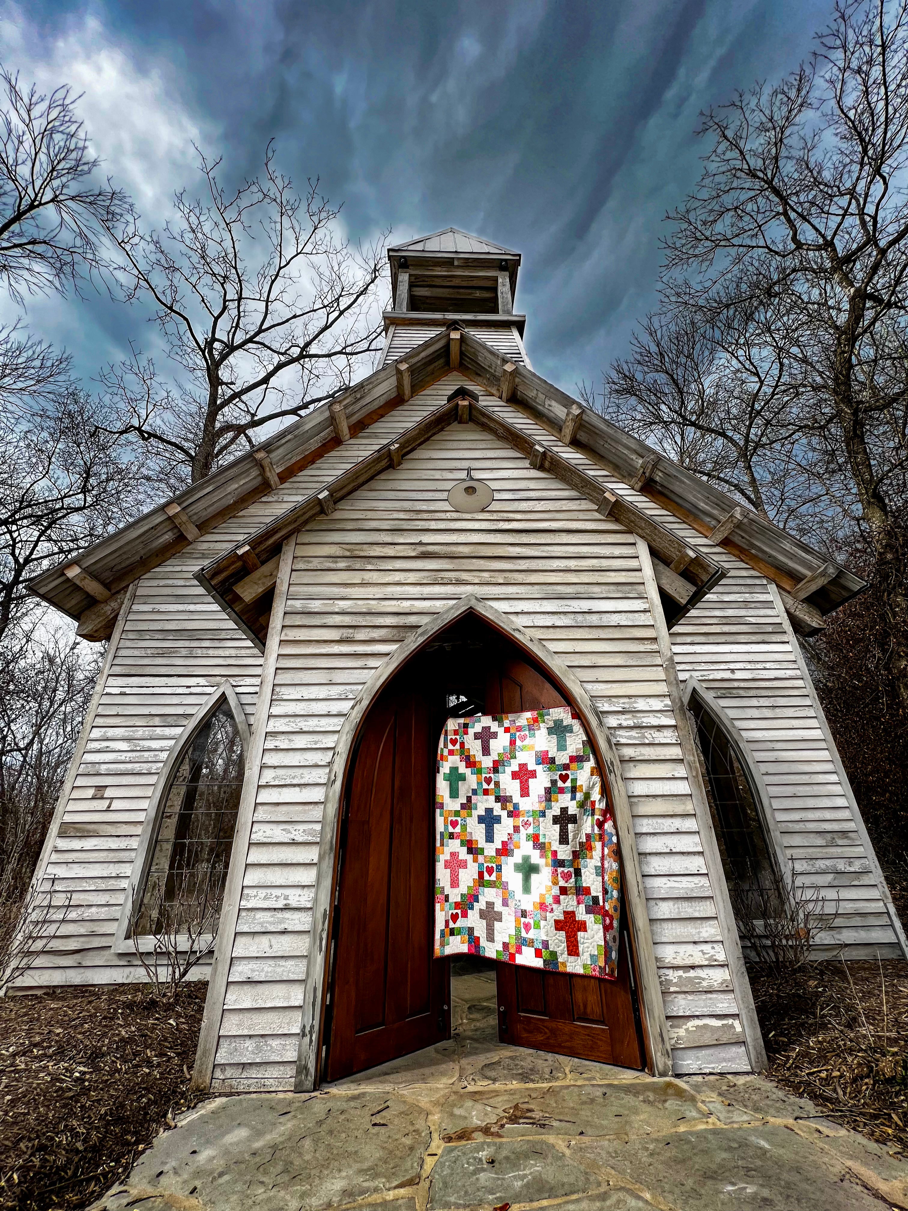 Perfect Peaces quilt was designed to reflect all the small pieces of life. The people we love, the happy times and even the rough patches are sewn together to create our story. The crosses and hearts reflect that He is the answer to a beautiful life and perfect peace! This quilt was also designed with smaller piecing to lend itself as a memory quilt.