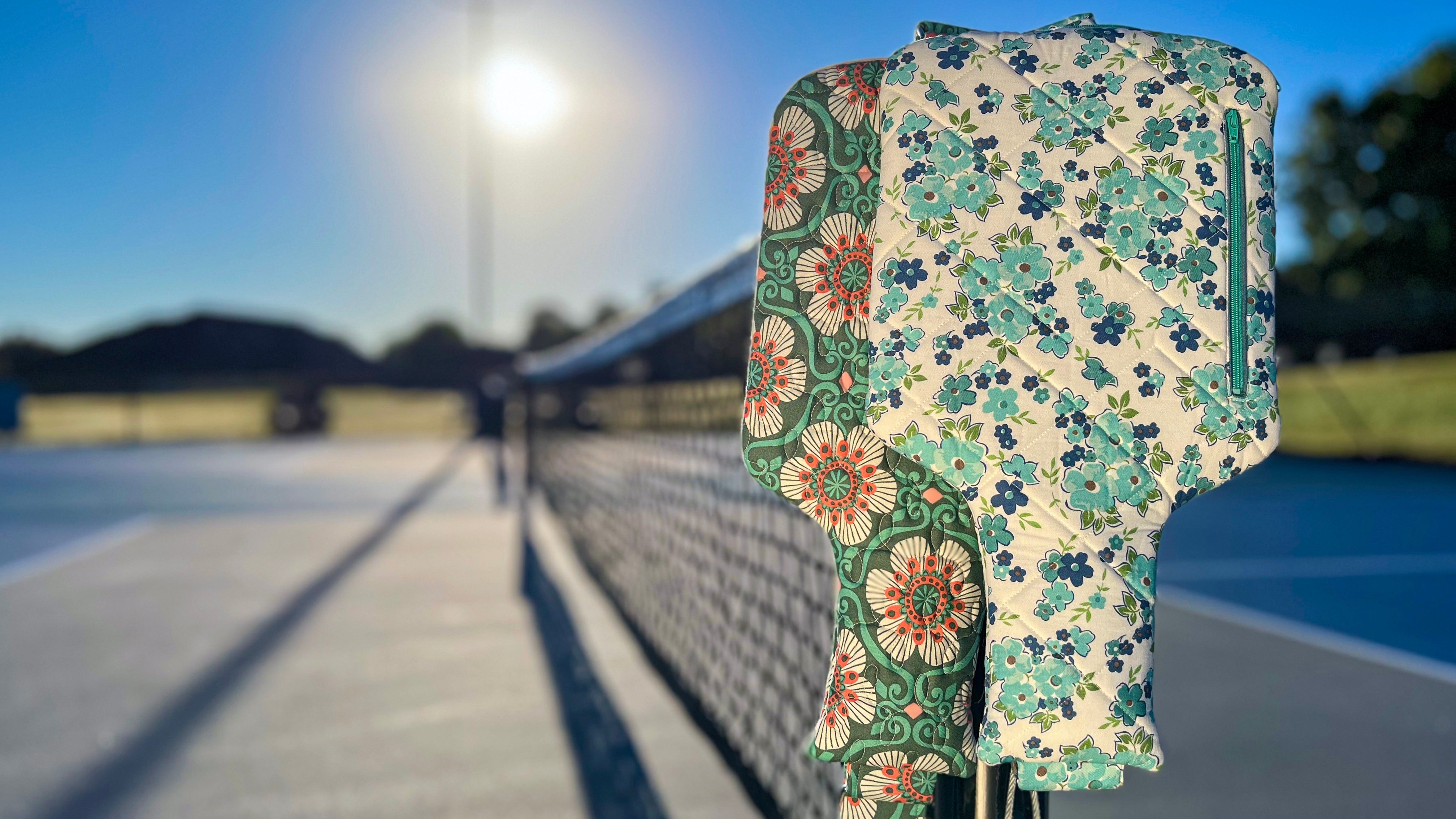 Create this bag and you're ready to hit the courts! Bag has 2 zipper pockets to hold your phone, keys, wallet, sunscreen or any other small items you want to carry along. Designed to hold a standard pickleball paddle, it has an adjustable strap that can be worn over the shoulder or cross body. Customize with any fabrics including your favorite sports team, hobby, applique´patches...