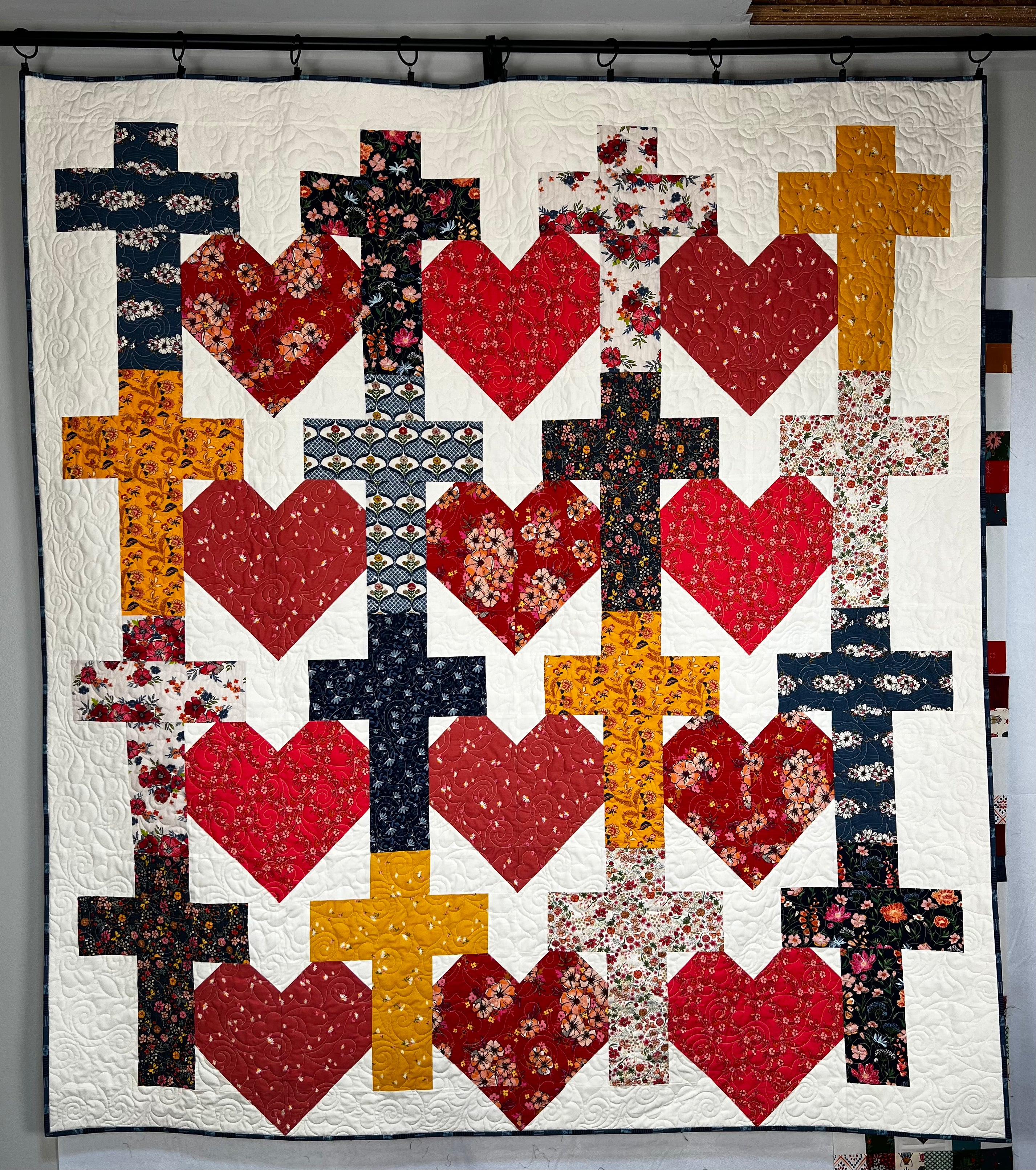 All the fabric you need to complete the "Yes He Loves Me" quilt top size of your choice.
